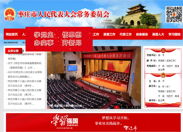 棗莊市人民代表大會是棗莊市的國家權(quán)力機關(guān)。 棗莊市人民代表大會每屆任期五年,每年至少舉行一次會議。會議由市人大常委會召集。經(jīng)過五分之一以上代表建議,可以臨時召集市人民代表大會會議。1960年,棗莊市人民代表大會建立,并召開了棗莊市第一屆人民代表大會第一次會議。 棗莊市人民代表大會行使下列職權(quán):在本行政區(qū)域內(nèi),保證憲法、法律、行政法規(guī)和上級人民代表大會及其常委會決議的遵守和執(zhí)行,保證國家計劃和國家預(yù)算的執(zhí)行;審查和批準本市的國民經(jīng)濟和社會發(fā)展計劃、預(yù)算以及它們執(zhí)行情況的報告;討論、決定本市的政治、經(jīng)濟、教育、科學、文化、衛(wèi)生、環(huán)境和資源保護、民政、民族等工作的重大事項;選舉市人大常委會的組成人員;選舉市長、副市長;選舉市監(jiān)察委員會主任、市中級人民法院院長和人民檢察院檢察長。選出的市人民檢察院檢察長,須報經(jīng)省人民檢察院檢察長提請省人大常委會批準;選舉省人民代表大會代表;聽取和審查市人大常委會的工作報告;聽取和審查市人民政府、中級人民法院和人民檢察院的工作報告;改變或者撤銷市人大常委會的不適當?shù)臎Q議;撤銷市人民政府的不適當?shù)臎Q定和命令;保護社會主義的全民所有的財產(chǎn)和勞動群眾集體所有的財產(chǎn),保護公民私人所有的合法財產(chǎn),維護社會秩序,保障公民的人身權(quán)利、民主權(quán)利和其他權(quán)利;保護各種經(jīng)濟組織的合法權(quán)益;保障少數(shù)民族的權(quán)利;保障憲法和法律賦予婦女的男女平等、同工同酬和婚姻自由等各項權(quán)利。 棗莊市第十六屆人民代表大會代表共有394名。市十六屆人大一次會議于2017年2月19日至23日舉行,決定設(shè)立市第十六屆人民代表大會法制委員會、內(nèi)務(wù)司法委員會、財政經(jīng)濟委員會、教育科學文化衛(wèi)生委員會、城鄉(xiāng)建設(shè)環(huán)境保護委員會、農(nóng)業(yè)與農(nóng)村委員會、民族僑務(wù)外事委員會。 棗莊市十六屆人大三次會議于2019年1月6日至9日舉行,決定增設(shè)棗莊市第十六屆人民代表大會社會建設(shè)委員會和更名棗莊市第十六屆人民代表大會內(nèi)務(wù)司法委員會為棗莊市第十六屆人民代表大會監(jiān)察和司法委員會。 |