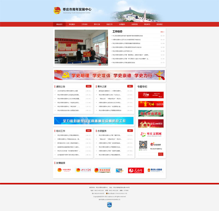 棗莊市青年發(fā)展中心的前身為棗莊市團(tuán)校,成立于1981年,是一所以培養(yǎng)共青團(tuán)干部和青年人才為主業(yè)的青年干部培訓(xùn)學(xué)校。坐落于棗莊市薛城區(qū)泰山路,占地20余畝,建筑面積12000平方米。 建校以來,在上級黨團(tuán)組織的關(guān)心和支持下,我們始終堅(jiān)持正確的辦學(xué)方向,以培養(yǎng)具有較高理論素養(yǎng)和工作能力的青年人才為己任,銳意創(chuàng)新、積極進(jìn)取,全面落實(shí)服務(wù)大局、服務(wù)社會、服務(wù)青少年的各項(xiàng)任務(wù);緊密結(jié)合廣大團(tuán)員青年的學(xué)習(xí)需求,不斷創(chuàng)新培訓(xùn)模式,充分發(fā)揮陣地作用,創(chuàng)造性地組織開展了形式新穎、內(nèi)容豐富的培訓(xùn)活動(dòng);采取長短結(jié)合、內(nèi)外結(jié)合、與經(jīng)濟(jì)發(fā)達(dá)地區(qū)聯(lián)合等多種形式,不斷拓寬辦學(xué)領(lǐng)域,擴(kuò)大辦學(xué)規(guī)模,提高辦學(xué)質(zhì)量,先后舉辦了職業(yè)中專班、軍地人才班和成人學(xué)歷班;不斷豐富工作內(nèi)容,提升培訓(xùn)質(zhì)量,逐步形成了以團(tuán)干部培訓(xùn)為主,青少年研究、青少年素質(zhì)拓展、青年志愿者培訓(xùn)、成人學(xué)歷教育,“四位一體”的辦學(xué)格局。 2003年3月團(tuán)市委在市團(tuán)校設(shè)立“棗莊市青春創(chuàng)業(yè)指導(dǎo)中心”;2004年9月,棗莊電大市團(tuán)校分校成立;2005年6月團(tuán)市委在市團(tuán)校設(shè)立全市首批“學(xué)士后流動(dòng)站”;2010年初在北京大學(xué)的幫助與指導(dǎo)下,市團(tuán)校成立了青少年素質(zhì)拓展培訓(xùn)基地。同時(shí),市團(tuán)校積極響應(yīng)市委、市政府號召,圍繞中心、服務(wù)大局,充分發(fā)揮自身優(yōu)勢,配合市、區(qū)農(nóng)業(yè)局、勞動(dòng)局,先后承擔(dān)了農(nóng)村勞動(dòng)力轉(zhuǎn)移、“陽光工程”培訓(xùn)班。 三十多年來,市團(tuán)校完成了25000余名團(tuán)干部和3000余名大中專學(xué)生的教學(xué)培訓(xùn)任務(wù),向蘇州、上海、煙臺等經(jīng)濟(jì)發(fā)達(dá)地區(qū)輸送高素質(zhì)的青年勞務(wù)人員近1000人,累計(jì)培訓(xùn)各類青年農(nóng)民1500人次,開設(shè)中央電大“開放教育”本、?茖I(yè)20多個(gè),學(xué)員近1000人,開展素質(zhì)拓展培訓(xùn)5000余人,成功舉辦兩屆全市青年攀巖比賽,受到了社會各界的一致好評。 2017年3月,棗莊市“青年之家”在市團(tuán)校建成投入運(yùn)行,設(shè)置法律維權(quán)、心理咨詢、婚戀交友、志愿服務(wù)、傳統(tǒng)文化教育和素質(zhì)拓展六大模塊,是棗莊共青團(tuán)面向社會、面向青少年的多功能、復(fù)合型、綜合性服務(wù)平臺,是團(tuán)組織使用管理的公益性、綜合性服務(wù)場所。 2017年8月,棗莊市團(tuán)校更名為棗莊市青年發(fā)展中心。展望未來,我們信心百倍,全體教職工將繼續(xù)圍繞黨政中心工作大局,以更加奮發(fā)有為的精神狀態(tài),開拓進(jìn)取、奮力拼搏,立身自身實(shí)際,發(fā)揚(yáng)優(yōu)良傳統(tǒng),在新的征程上邁出新步伐,再上工作新臺階,再創(chuàng)事業(yè)新輝煌。